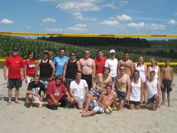 Teilnehmer und Veranstalter des 5. Beach-Volleyball-Hobbyturniers im Lichtenberger Schwimmbad, für das wiederum die SPD Ortsvereine aus Fischbachtal und Groß-Bieberau die Schirmherrschaft übernommen hatten. Links im Bild die SPD- Vorsitzenden Axel Goldbach (Groß-Bieberau) und Petra Messerschmidt (Fischbachtal).